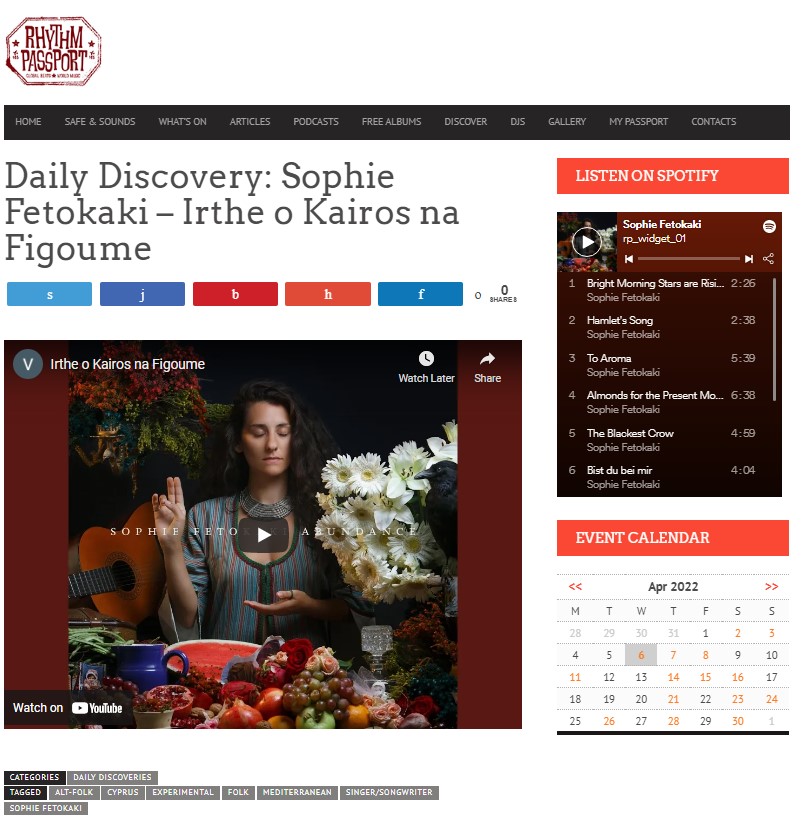 “Irthe o Kairos na Figoume” from Abundance on Ryhthm Passport’s “Daily Discovery”